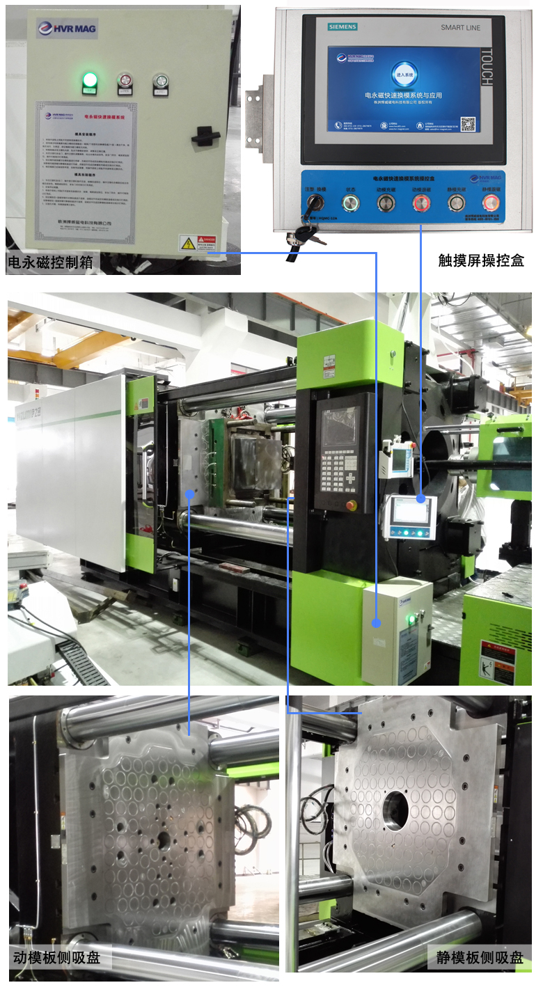 改善前:人工換模,勞動強度大,換模時間長 改善后:換模時間縮短到1-3分鐘,磁力均勻分部于模具,與磁極面全面接觸,更好的保證了合模精度,提高質量,減少耗損,模具使用壽命提高50%以上。 上一篇:海天注塑機配套用磁力模板 下一篇:出口日本圓形磁極配套用磁力模板 相關資訊 沖床沖壓磁力快速換模系統(tǒng) 磁力快速換模系統(tǒng)降低換模時間 磁力模板快速換模系統(tǒng)有哪些安全保護措施 磁力模板快速換模設備安裝前準備工作 注塑機快速換模的三個鎖模要點 快速換模有哪些優(yōu)勢與需求