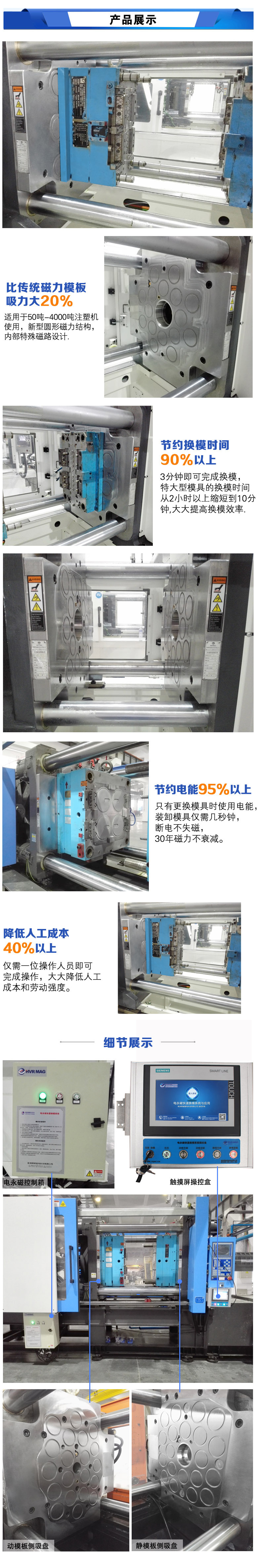 電永磁快速換模系統(tǒng)使模具裝卸時間節(jié)約90%以上,特別適合當(dāng)前“多批少量”的生產(chǎn)模式,大大地提升企業(yè)競爭能力,做到安全、快速、準時交貨,提高生產(chǎn)效率,避免工傷事故的發(fā)生和模具的碰撞損壞。